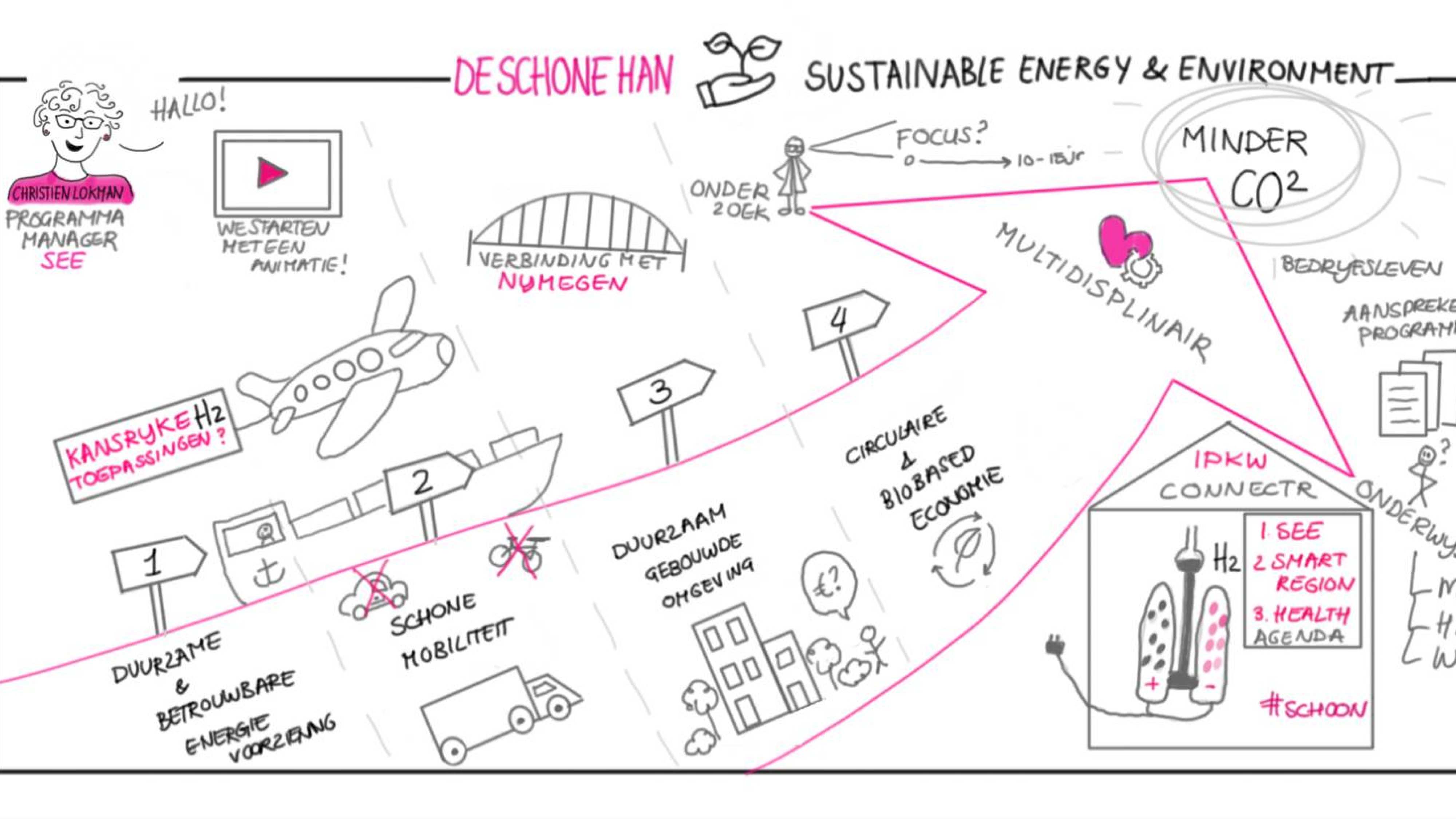 In strak geregisseerde sessies presenteerden teams van HAN-medewerkers de 3 zwaartepunten. Natuurlijk lichtten ze daarbij aansprekende praktijkvoorbeelden toe. Bij Sustainable Energy & Environment (SEE) zijn dat de verdere ontwikkeling van Connectr op Industriepark Kleefse Waard in Arnhem en de uitgebreide kansen voor waterstoftoepassingen. Beide dragen direct bij aan een duurzame wereld met nauwelijks CO2-uitstoot.