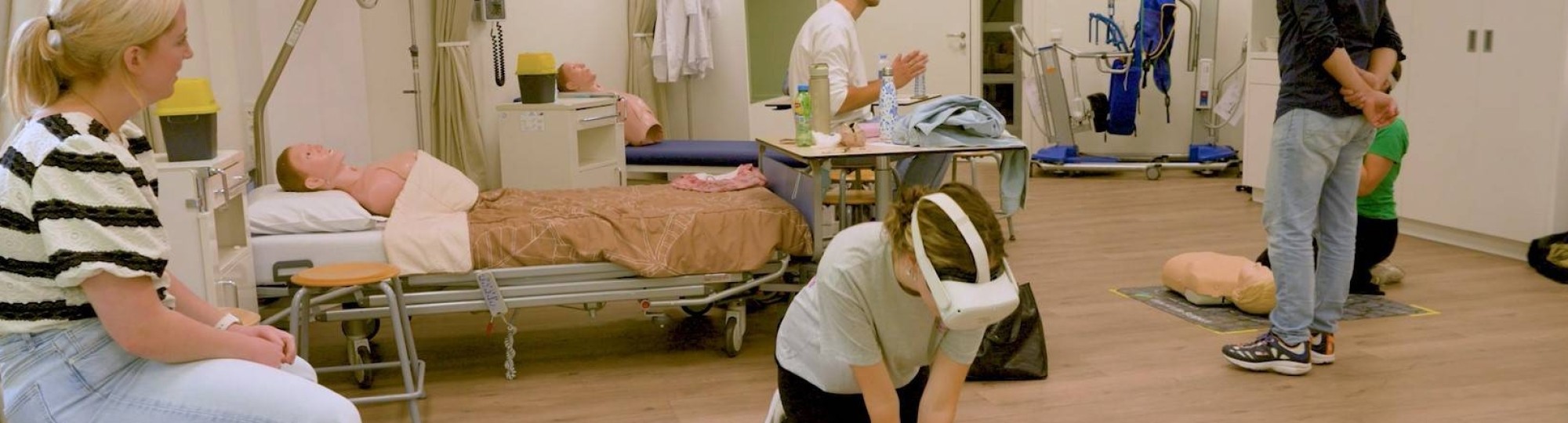 De opleiding Verpleegkunde introduceert een nieuwe manier van leren: studenten oefenen voortaan ook reanimatie in een virtuele wereld, met VR-brillen. Samen met iXperium Health en het Praktijkhuis AGV voegde de opleiding Verpleegkunde een interactieve leeromgeving toe, die het onderwijs naar een hoger niveau tilt.