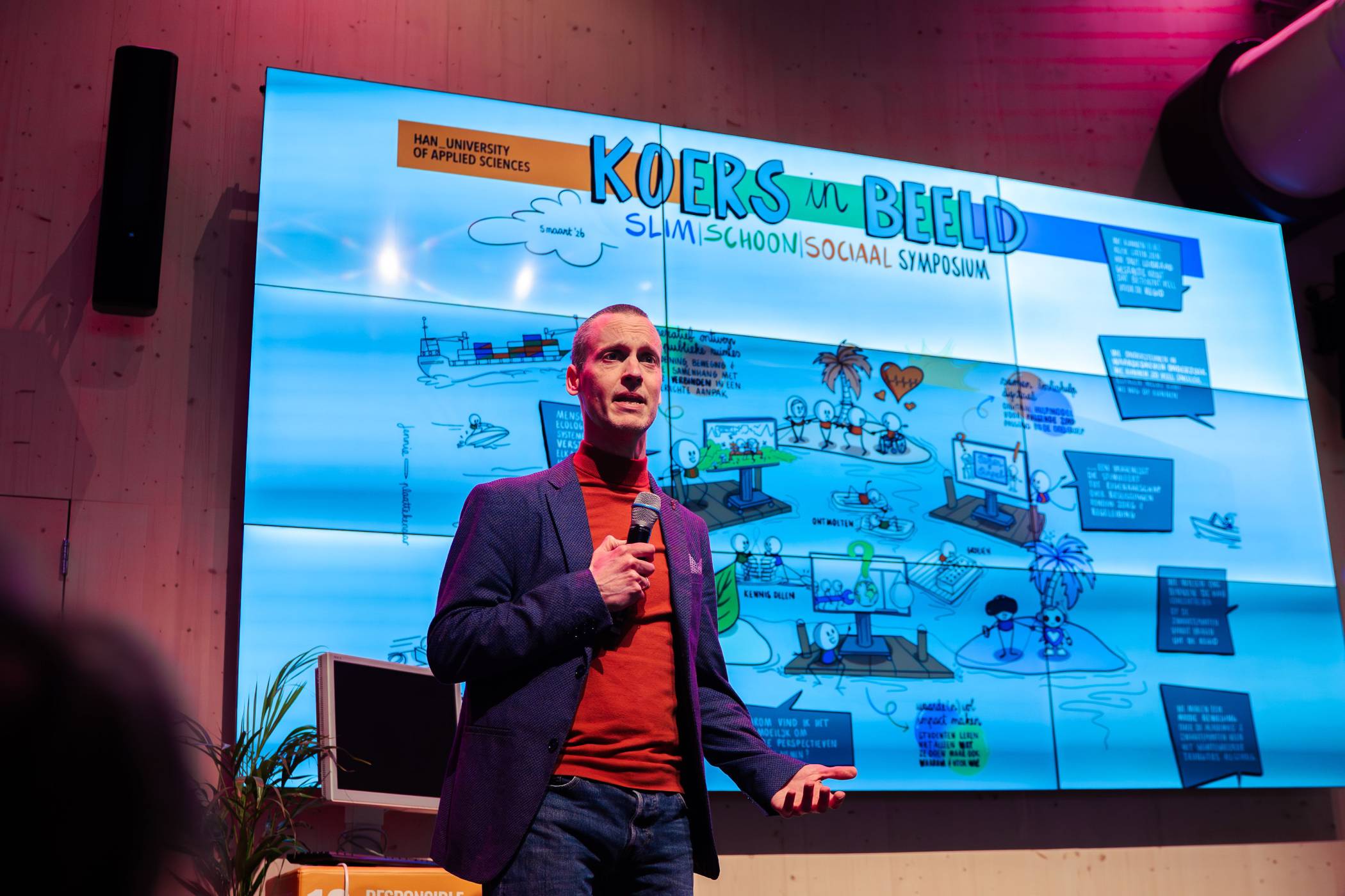 De 13 projecten laten mooi zien hoe de zwaartepunten Slim, Schoon en Sociaal de academies en lectoraten met elkaar verbinden, en welke maatschappelijke impact de HAN daardoor in de regio kan maken. Volgens Maarten van Gils, leading lector van Slim en één van de boegbeelden van de drie zwaartepunten, was dat niet vanzelfsprekend. Na een wat moeilijk begin is er vanaf 2021 meer begrip ontstaan voor Slim, Schoon en Sociaal en heeft de boodschap steeds meer mensen bereikt. “Maar van de 4.000 medewerkers die de HAN heeft, kent het merendeel de inhoud van de zwaartepunten nog niet, laat staan de regio waarin we werken. We gaan met het opstellen van het nieuwe instellingsplan richting een cruciaal punt. Mijn oproep is daarom: verspreid de boodschap en deel de verhalen. Alleen zo kunnen we nog meer impact maken voor een slimmere, schone en sociale wereld.”