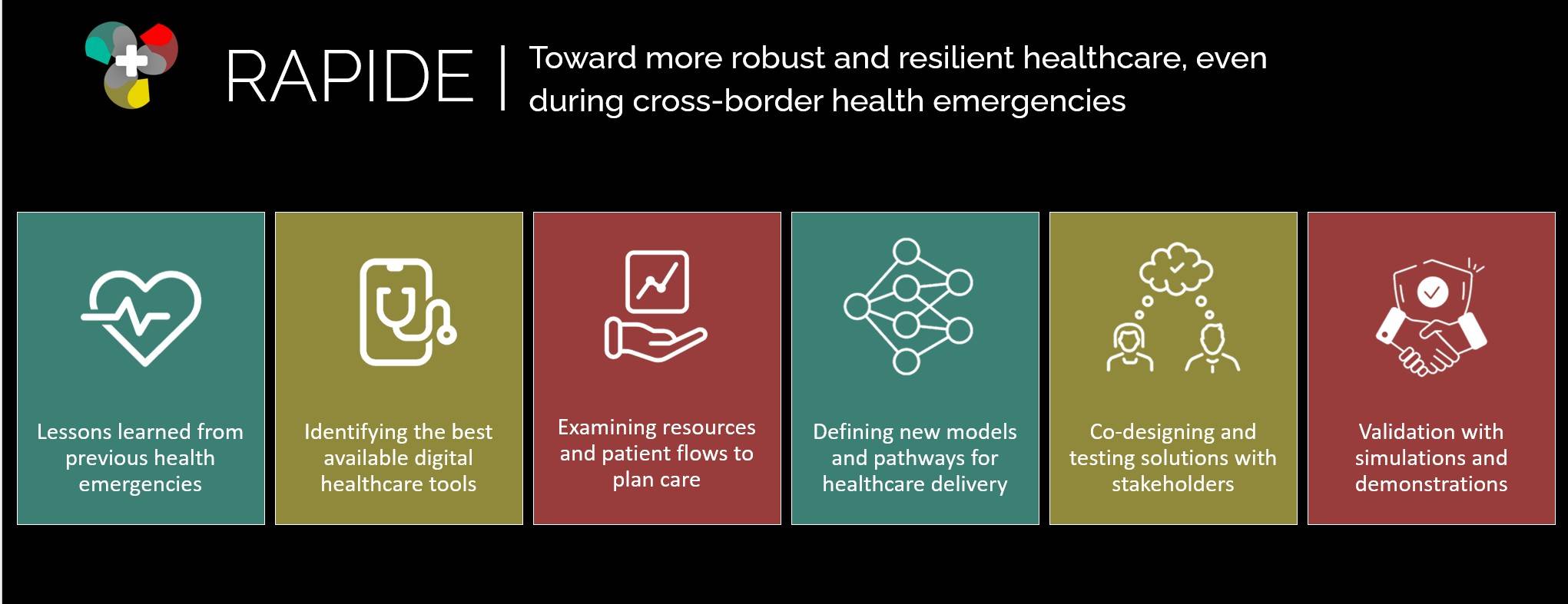 RAPIDE heeft tot doel een portfolio van instrumenten voor gezondheidszorgsystemen te ontwikkelen, te valideren en te demonstreren, die robuuste besluitvorming, veerkrachtige zorgprofessionals, patiënten en zorgverleners en flexibele zorgverlening mogelijk maken, waardoor de toegang tot geplande zorg zelfs tijdens onverwachte crises behouden blijft.